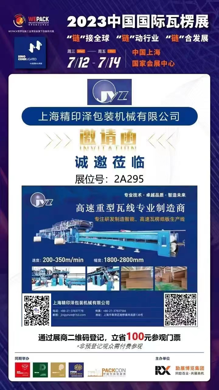 【邀请函】上海精印泽包装机械有限公司诚邀莅临2023中国国际瓦楞展